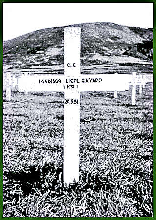 Circa.1951 Comrades visiting The provisional graves of L/Cpls. Yapp and Hanlon in Busan UN military cemetery