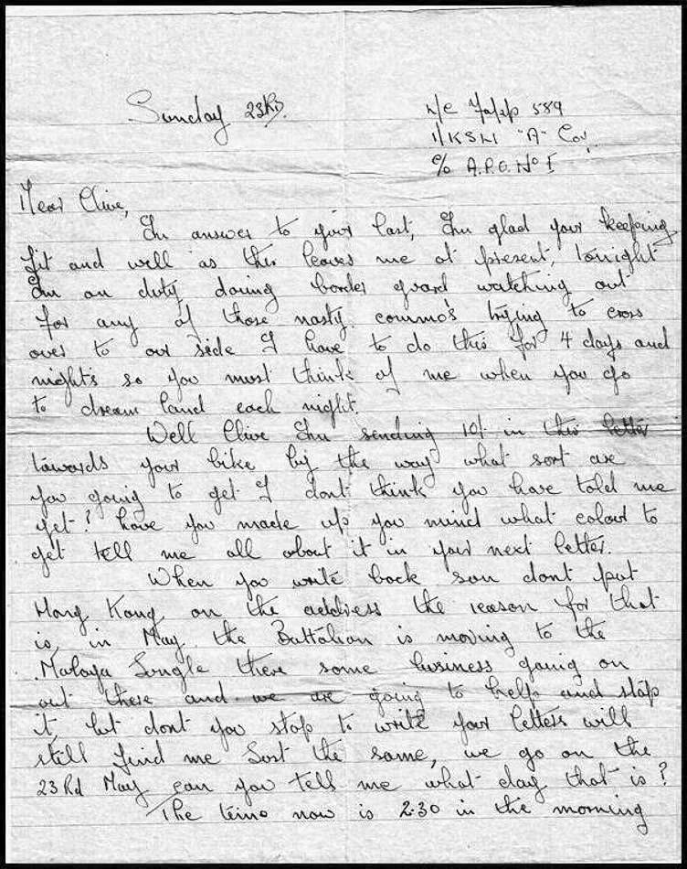 This letter was sent from HK to me just before he left for Korea, the stratagem was that they were bound for Malaya,