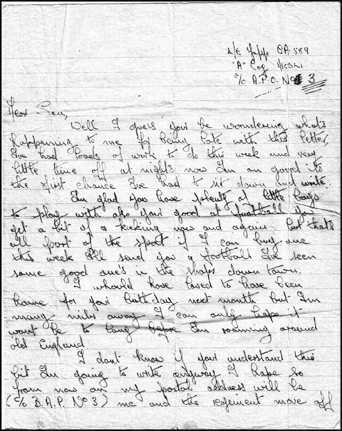 This is the letter he sent his son when he was about to embark to the battleground in Korea. The BBC had let the cat out of the bag in the news that they were on their way to Korea.