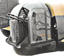 My grandson wants to know what it is like flying in a Lancaster bomber. Well first of all It is different for every member of the crew as we are all in different parts of the plane doing our particular duties. The crew of a Lancaster consists of seven men. The pilot and engineer sit in the cockpit together up front, the pilot flying the plane and the engineer checking the instruments showing the engine revs and boost and calculating the fuel consumption. Their view in daylight is very restricted forward and then only upward. There are two small windows on each side but of course the pilot relies on his instruments rather than his vision. The bomb aimer lies full length right up in the nose of the aircraft, forward and below the pilot and engineer. He is surrounded by clear Perspex and has unrestricted vision all around. The navigator's position is in the fuselage on the port side (left), behind a bulk-head. He sits at a table with his maps and slide rule etc. and has one very small round window, but on operations, mostly at night, he has to draw a blackout curtain all around His "office" and work with a small light. The wireless operator is next, just behind the navigator, busy with his head phones, Morse key, radio etc. his "office" is similar to that of the navigator. Next, roughly two-thirds down from the front is the mid-upper turret with two machine guns which are mounted on top of the fuselage and the mid-upper gunner has a field of vision of 360? level and above but is restricted below by the fuselage. There is also a turret with two machine gins right at the very nose of the plane which are manned by the bomb aimer in an emergency. He also uses the turret when possible for a change rather than lying full length for hours on end. The last position is mine, the rear gunner or tail gunner as the turret is at the very end of the fuselage more like a platform surrounded by Perspex. It is equipped with four machine guns and because the rear gunner sits facing backwards all the Perspex in front of him has been removed for clearer vision.